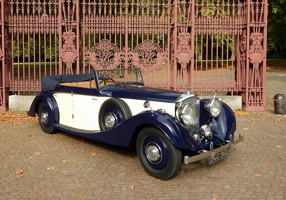The ‘Derby Bentley’ is widely regarded as the most sophisticated car that money could buy in the 1930’s. The chassis was remarkable in that it offered the driver effortless sports car performance in almost absolute silence. This was achieved with a six cylinder engine with a synchromesh four-speed gearbox, with servo assisted braking and with a one-shot central lubrication system. If this was not enough the car also had the benefit of adjustable rear suspension and a chassis damper that doubled as a front bumper. The engine had a cross flow cylinder head with SU carburettors, a crankshaft damper and roller cam followers. A favourite feature was the thermostatically operated radiator shutters that open and close to regulate the engine temperature. Originally only available with a 3½ Litre engine the more powerful 4¼ Litre option became available in 1936. In a typically understated way Rolls-Royce had created one of greatest automobiles of the day, the “Silent Sports Car” and it is not surprising that so many notable figures, celebrities and racing drivers of the day owned them.