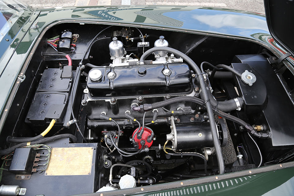 The car is presented in beautiful condition with perfect paint in British Racing Green, contrasting Oxblood leather interior and sitting on those black Borrani wheels. It currently has the low Perspex screen and roll bar fitted but comes with a full set of weather equipment, hood, tonneau and side-screens and the original windscreen. Its continuous provenance, interesting international history and its rarity make it highly eligible for all the top historic events. It’s a sports racer that works well as a road car, so if you decided to go circuit racing you could go all ‘old school’ and drive it to the track. Alternatively, with the original screen fitted and with its surprisingly capacious boot it will work well as a comfortable tourer or historic rally car.